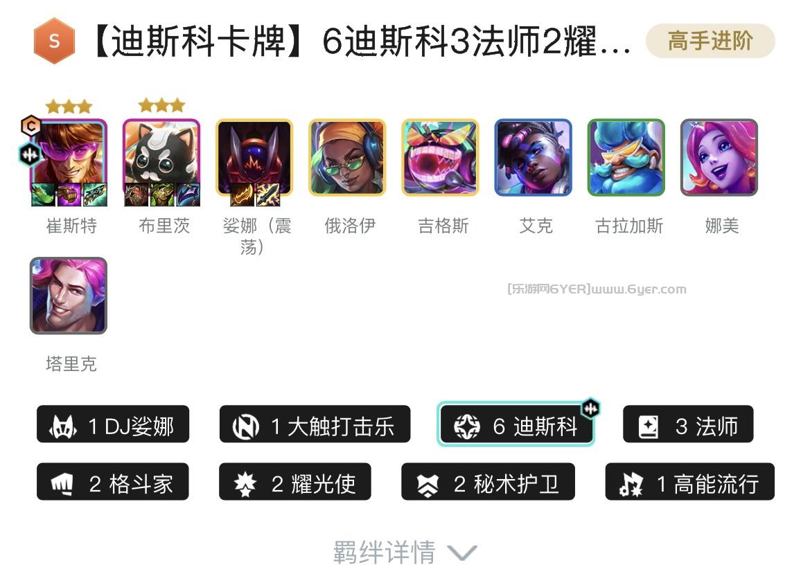 1DJ娑娜、1大触打击乐、6耀光使、4迪斯科、3法师、2格斗家、2秘术护卫、1高能流行