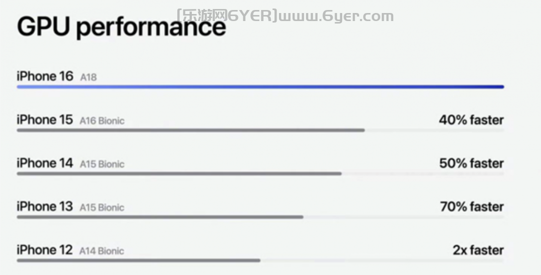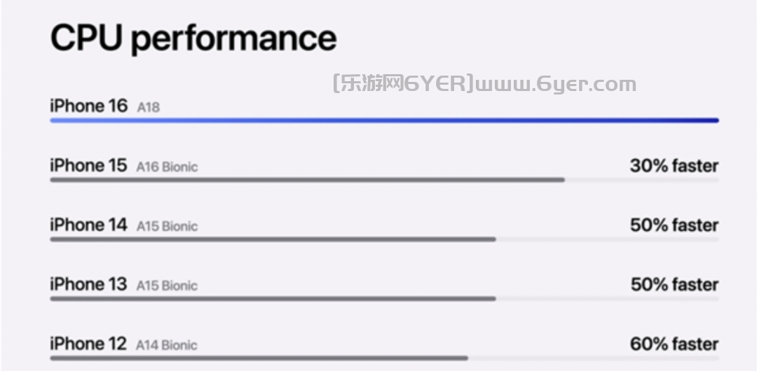 在GPU方面,A18采用了五个核心设计,相比A16、A15、A14分别提升了40%、50-70%、100%。虽然苹果没有直接对比A17 Pro,但可以预见,A18与A17 Pro在性能上的差距不会太大。