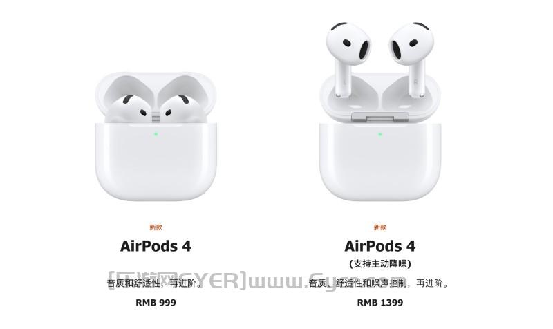 国行版AirPods 4的售价为999元,支持主动降噪的AirPods 4售价为1399元, 9月20日发售。