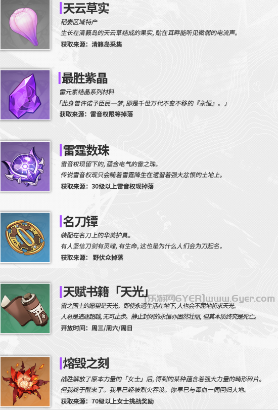 最胜紫晶:雷元素结晶系列材料,雷音权限等掉落