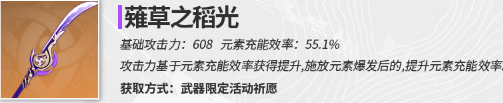 基础攻击力: 608元素充能效率: 55.1%