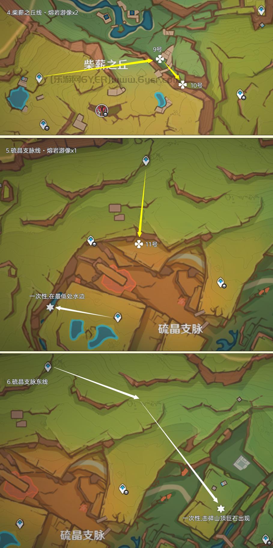 重要提示:黄色路线为高效率刷取路线、推荐去,该篇均为黄线,主要是量太少了;