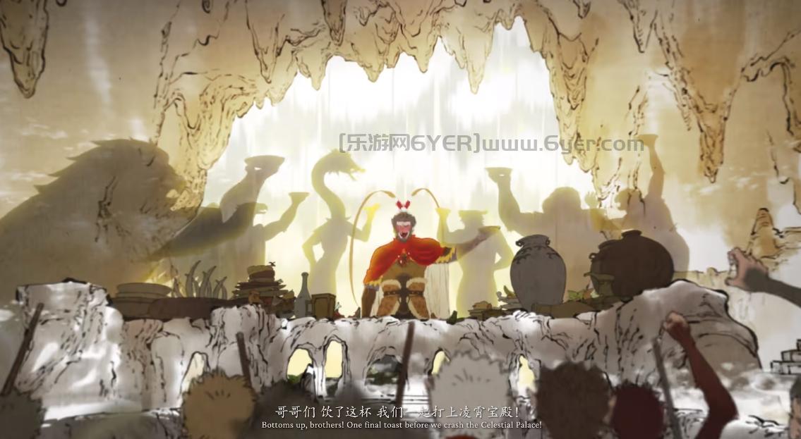 随着大圣的举杯画面也是来到了花果山中,与大圣一起举杯的还有另外六位妖王这里应该是七大圣结义了,在这里也是寓意着一起攻上天庭。
