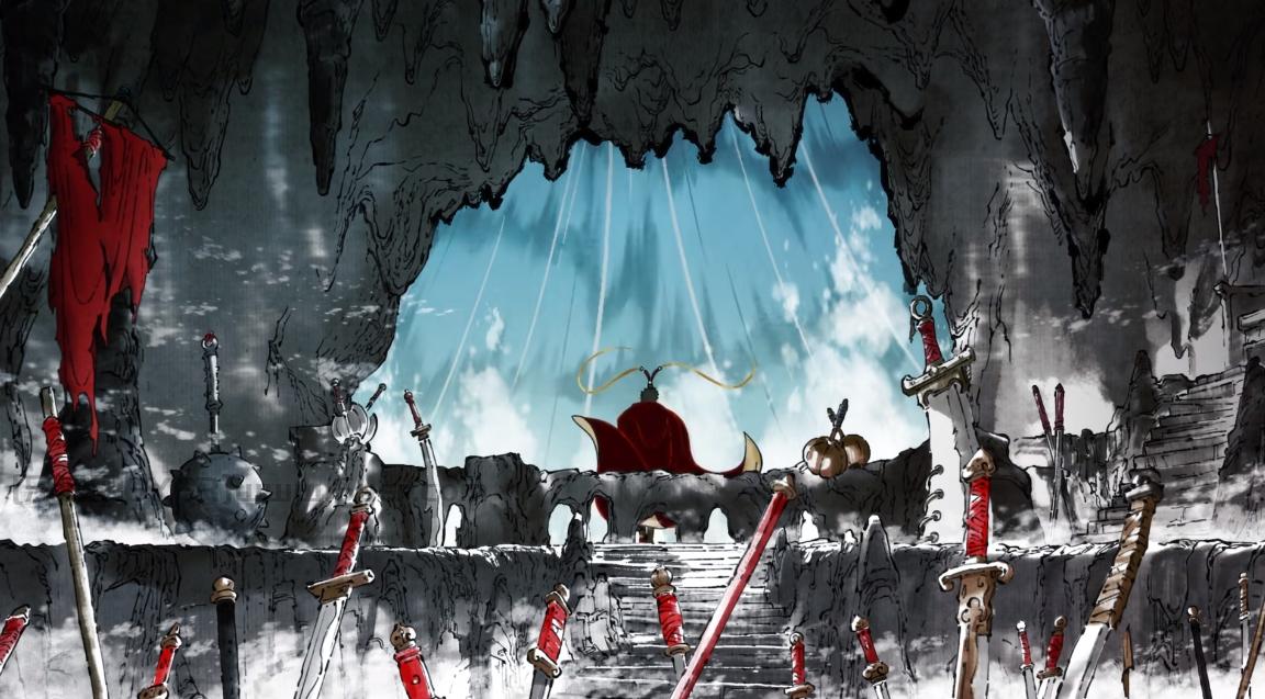 当然看结局也是可想而知,画面随着大圣的碗放下,背景的颜色逐渐变暗,大圣一挥斗篷镜头拉远,只见满地的兵器,在最前方还竖立六把不一样的武器,小编猜测应该是六位大圣的,也就是说花果山的七十二洞妖王全都战死了,只剩下大圣一人,音乐也逐渐来到了末端之间大圣取出耳朵的金箍棒缓步朝着光亮走去,本篇也是结束了。