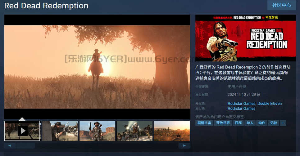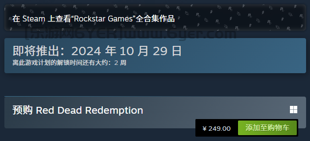 《荒野大镖客》已经正式上架Steam,该作国区售价249元,预定将于10月29日正式已发售。