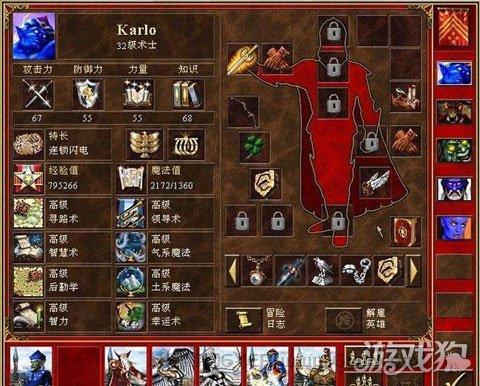 4、诅咒铠甲:(骷髅帽、黑魔剑、骨质胸甲、亡灵盾)。诅咒之铠可以使敌人所有部队受到缓行、诅咒、虚弱和大难临头(降低幸运)的状态50回合,这样的效果会大大降低敌人部队的整体战斗力。此外宝物还将增加英雄的攻击防御各3点,知识法力各2点。