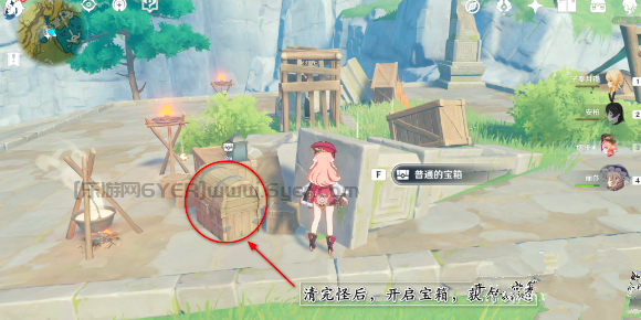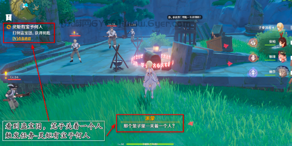 可以看到笼子周围有好几个盗宝团的人守着,直接上前将其击败,开启宝箱即可获得钥匙;