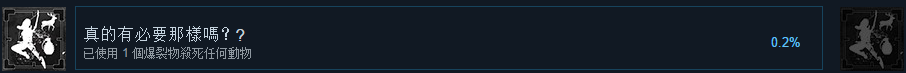这两个差不多类型的成就,一个是游戏结束后,要替天行道,╭(╯^╰)╮,铲除余孽。把敌人干掉即可。第二个就是最好在冒险者难度去穿着套衣服,可以穿这套衣服去做杀动物的相关成就。