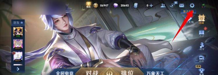 1、打开王者荣耀首页,点击右上角的设置图标。
