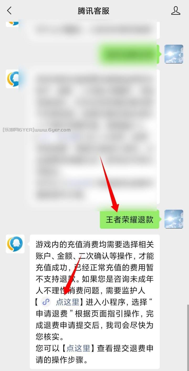 4、跳转到客服页面,输入关键词王者荣耀退款,点击蓝色链接进入。