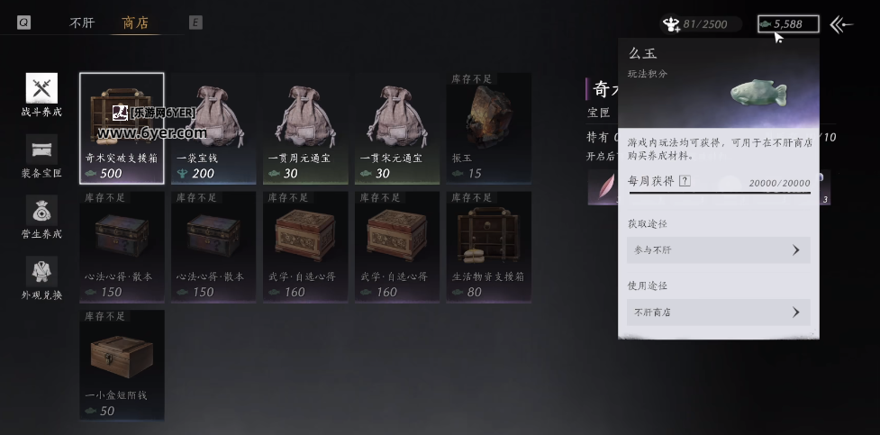 么玉:在不肝商城购买养成道具,上限2万可以换振玉和心法心得。