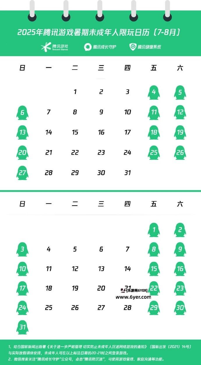 为防止未成年人沉迷游戏,腾讯游戏、网易游戏分别发布了2025年暑期未成年人限玩日历,规则基本一致。