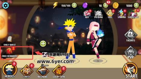 2、回到游戏主界面,点击屏幕左侧的“free rewards”即可免费领取每日奖励。
