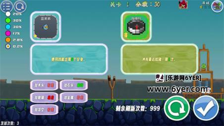 1、每次使用的鸟都是不同星级的,每个星级的小鸟会有不同的效果等你去使用。