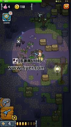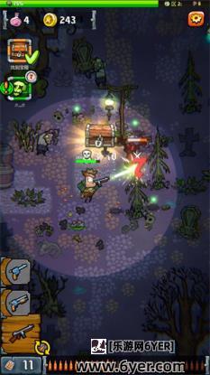 2、进入关卡后滑动屏幕来控制角色移动,角色遇到僵尸会自动开枪攻击。