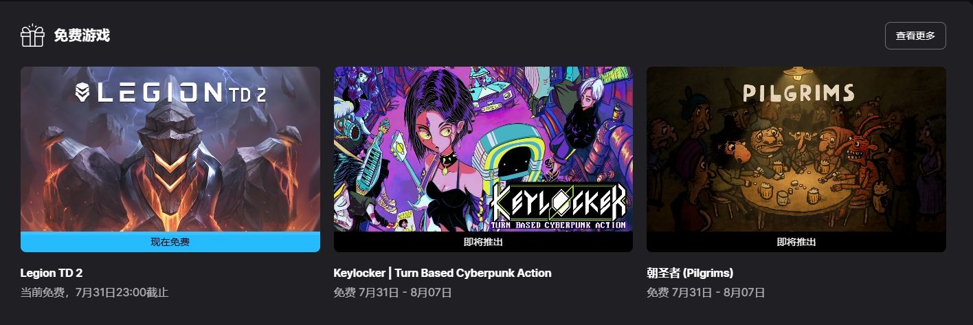 本周Epic喜加一游戏正式公布,战略塔防游戏《军团战争2(Legion TD 2)》免费领取!领取日期截止到7月31日23:00点,玩家们可千万不要错过。Epic下周将会送出《朝圣者》和《Keylocker | Turn Based Cyberpunk Action》两款游戏。