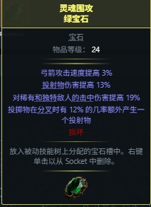 选择翠绿珠宝,词条可以选择弓箭攻击速度提高、投射物伤害提高、对稀有和传奇敌人伤害提高、投射物有概率分岔等词条。
