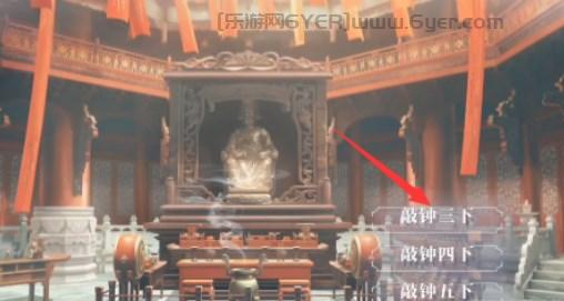 1、点击蓝光圈,与夏萧因对话,选择【敲钟三下】即可。