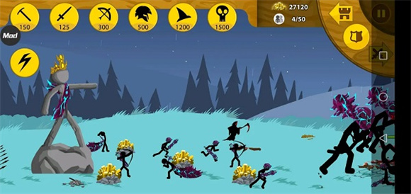 1、你需要成为一名火柴人指挥官,得指挥你的火柴人军队去采集资源、造兵。