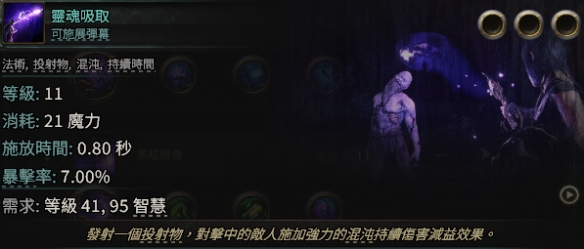 灵魂吸取:极速苦痛+秘能节奏+细思施法,有三级宝石选择汲取异常状态替换极速苦痛