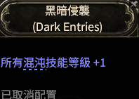 这套开荒bd为全职业通用的诅咒混沌,天赋往混沌伤害和法术伤害,诅咒范围点。由于厄运灾厄和腐朽咒术吃智慧和魔力的加成,属性点尽量点智慧,这边以女术士为例