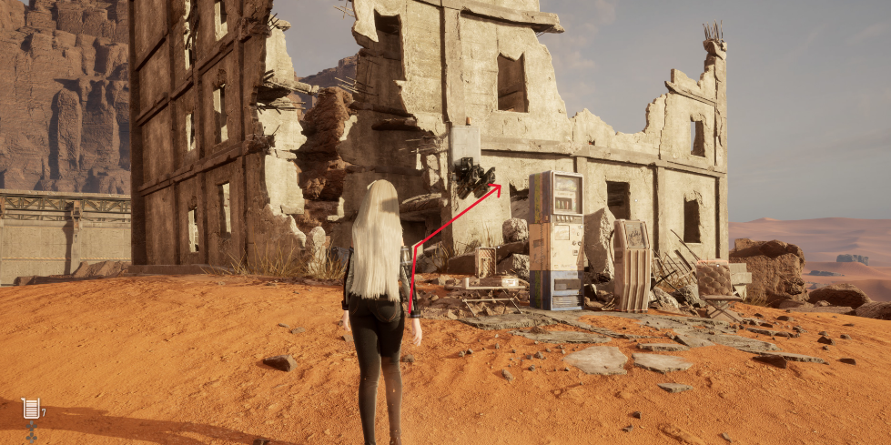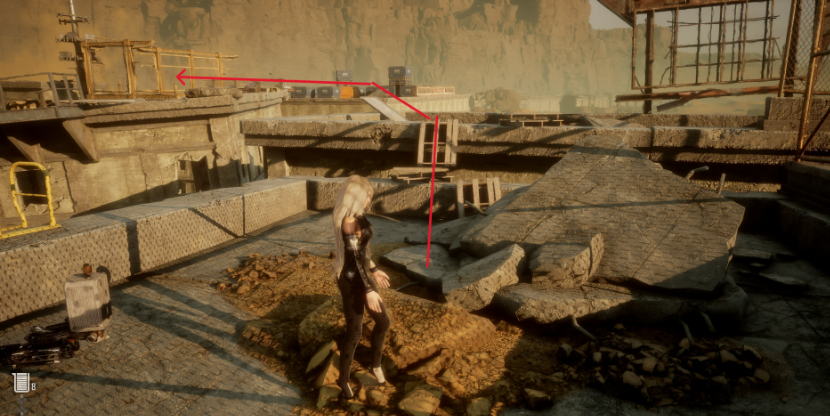 从掩埋的废墟外围补给营地出发,往南走穿过小铁门,继续往南到地上的红色箭头告示牌处右拐,从梯子爬到楼顶,连着跳过两个房顶后来到蓝色补给箱群,星之泪就在补给箱群中。