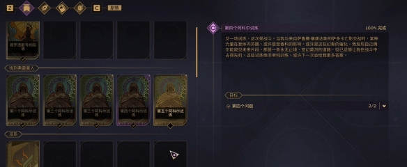 2、在任务栏菜单里面的试炼,找到该游戏的第四个章节。