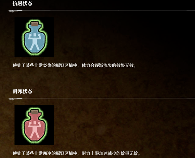 耐热耐寒放一起,分别用冷热饮或者冷热蓑衣虫触发。