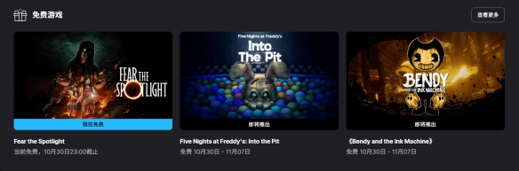 Epic本周喜加一游戏正式公布,恐怖冒险游戏《惧怕聚光灯》免费领取!领取日期截止到10月30日23:00点,玩家们可千万不要错过。Epic下周将会送出《玩具熊的五夜后宫:陷入球池》和《班迪与墨水机》。
