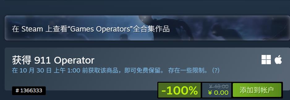 近日,模拟经营游戏《911接线员》在Steam平台开启限时免费领取活动。玩家现可直接将游戏永久入库,活动持续至10月30日凌晨1:00,数量有限,先到先得。