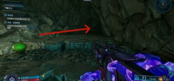 朝着箭头方向继续深入洞穴探索,找到任务所在地点。
