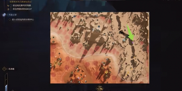 2、位置大概在下图所示的箭头方向,一定要从地图上面顺着的路来到这个地方。
