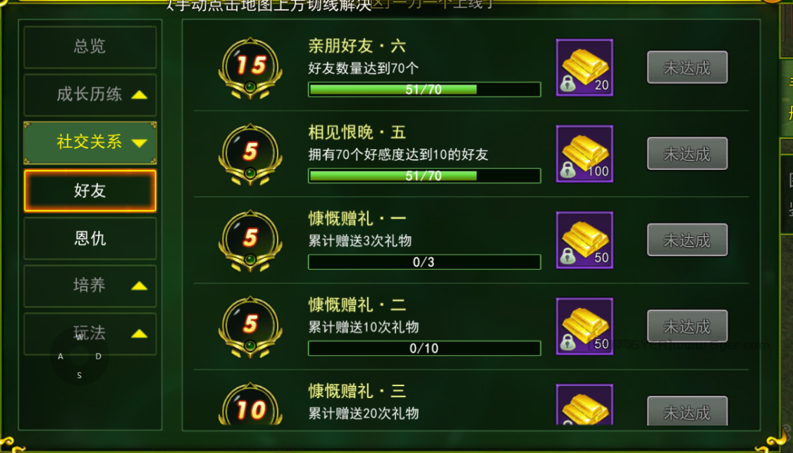 好友,恩仇两个小部分组成,奖励:金条、积分!
