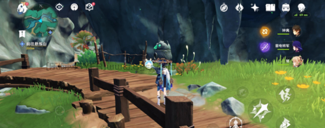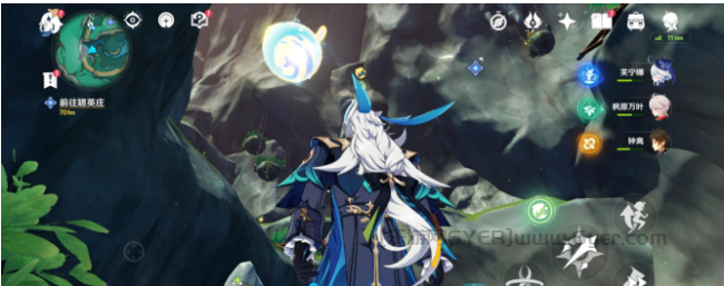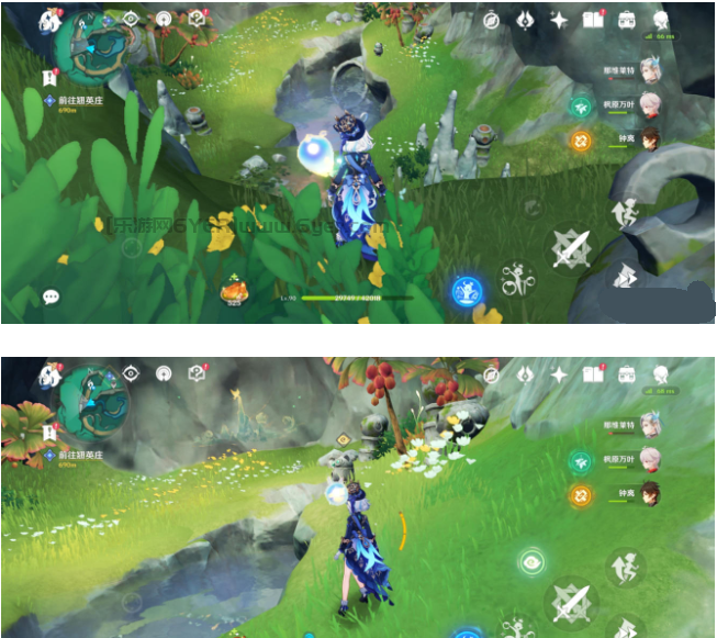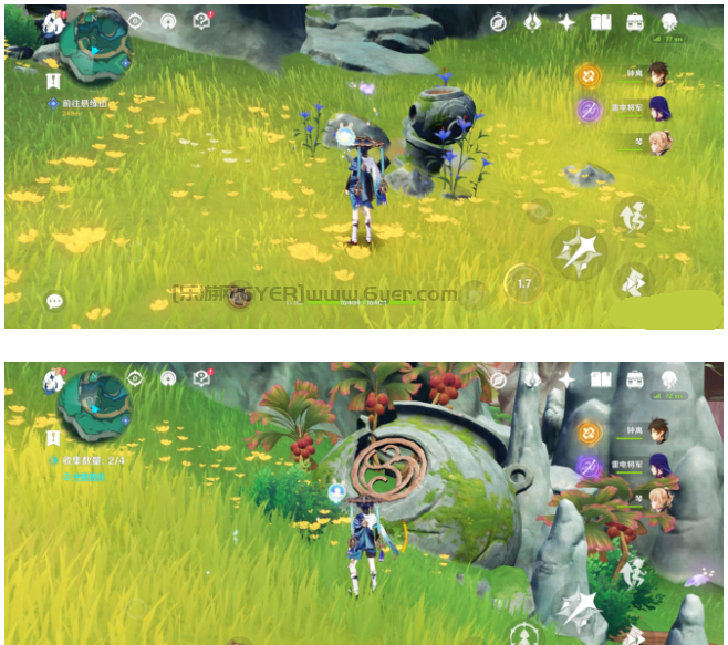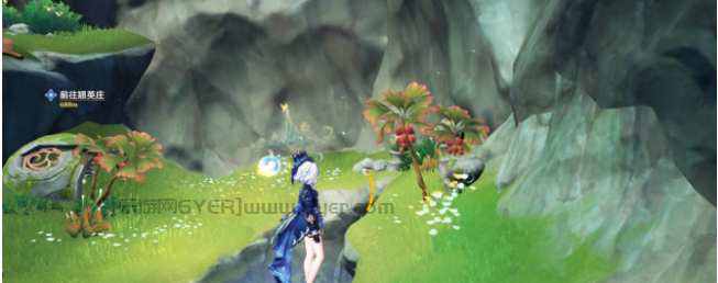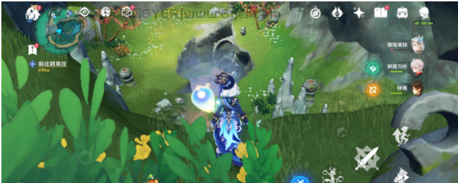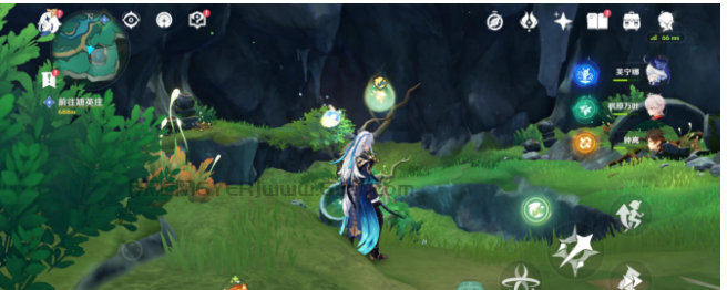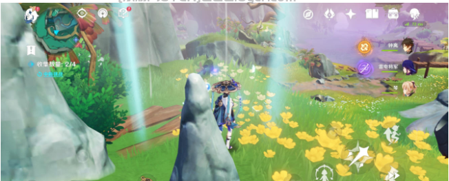 然后来到下方找到一个四风叶,用风元素角色激活产生风场,正前方石头就又有一只蝴蝶