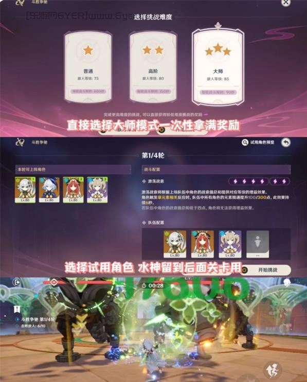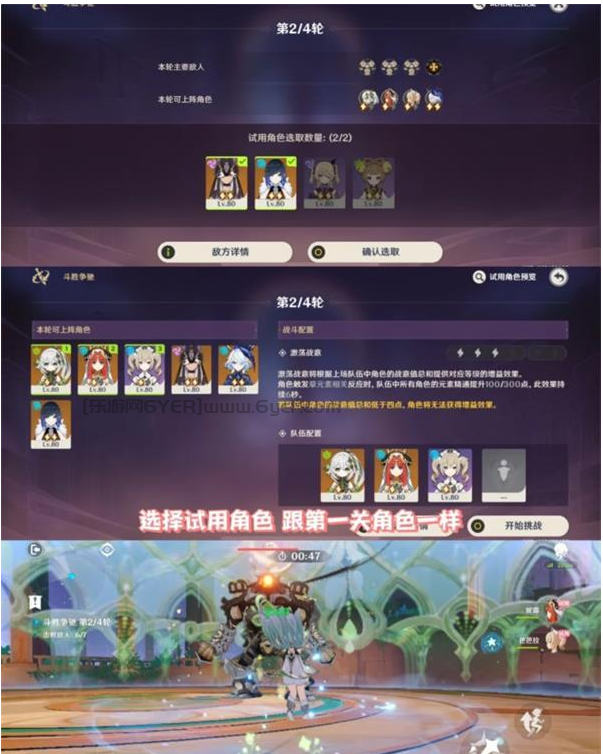 6.第四轮试用角色跟第三关一样,水神夜兰白术qe后切赛诺前台输出。