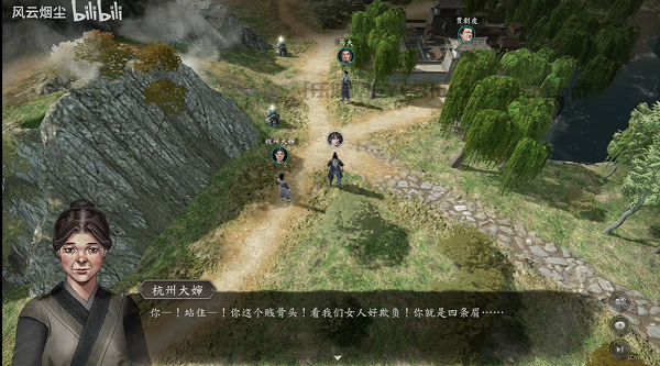 4、之后前往八方客栈,找到围观群众,进入战斗,2个血少的村民不能血量太低,半血左右会退场,剩下两个小温小柔可以击败;