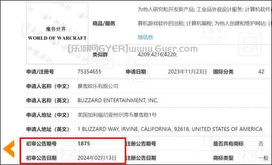 “魔兽世界”的商标是在2023年11月23日开始申请的,目前初审公告已经发布,应该很快就可以注册完成了。