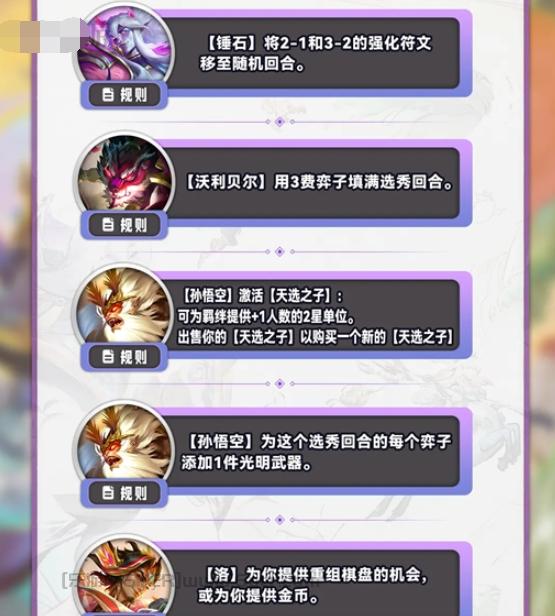 4、【孙悟空】为这个选秀回合的每个弈子添加1件光明武器。