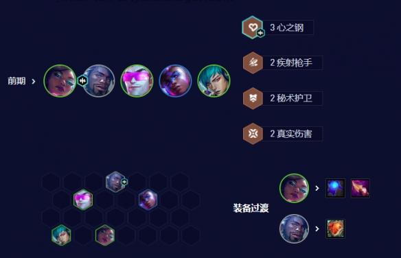 前期优先拿奎桑提天选,心之钢奎桑提天选搭配:奎桑提、莉莉娅、塞纳、厄斐琉斯。6人口开4秘术或5钢。秘卫奎桑提天选:前期开4秘术,后排可以用飞机+卡莎,飞机带装备打工,或者用巴德+娜美,娜美带装备打工。