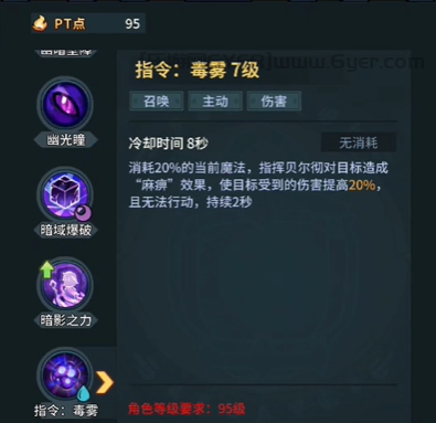 2、再次召唤时可指挥贝尔彻使用毒雾,该效果将叠加3层。