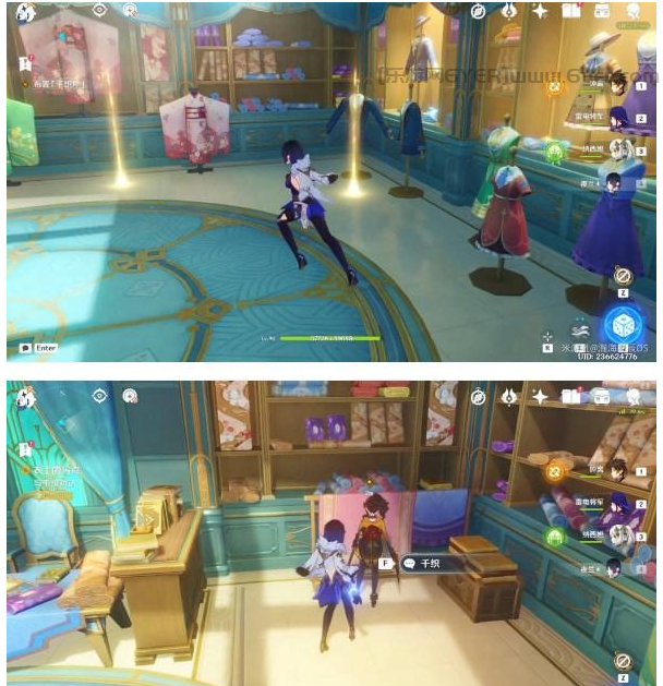 6.布置千织屋,从左到右依次是:稻妻着物,男士礼服,女士礼服,和千织对话。