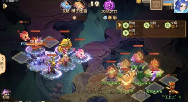 打法思路:大圣之力先选加能量,优先合成点杀棋子或者封印(歌小谣,野兽流派,神灵流派),前2回合别刷新,有啥棋子就买啥,如果刷出歌小谣,野兽流派,神灵流派,就卖的不要的买这几个。