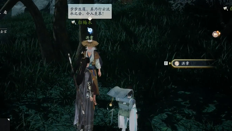 2、铜锤手精要篇:梅林东边传送点小悬崖石头下,梅树下的洪章任务,打护卫在梅林周围,狼在茶田处