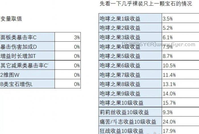 那么,对于收益V来说,各宝石的计算公式如下: