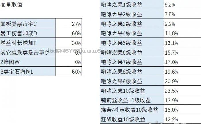 其中,咆哮之果各级对P的取值如下:
