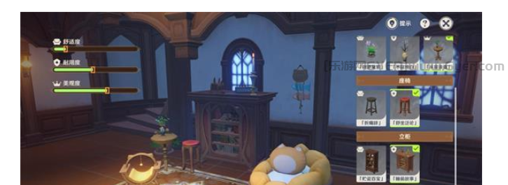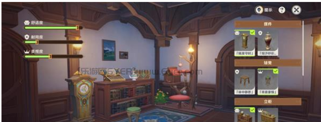 1.原神团团灰的安逸居室点击布置选择:精准守时、率意豪情、闲阅书阁、辉煌青琅、玫瑰红树。