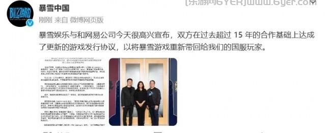 4月10日,暴雪官方宣布与网易达成协议回归中国市场,网易游戏也发博,称很荣幸能与暴雪娱乐再次携手,将暴雪游戏重新带回国服。玩家们,久等了!