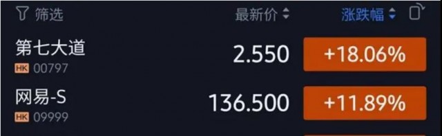 ▲图:网易港股股价涨幅遥遥领先于其他游戏公司,仅次于第七大道
