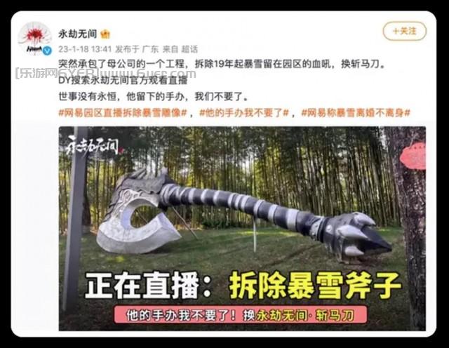 ▲图:网易在《永劫无间》官号上直播拆除暴雪魔兽血吼战斧的雕塑