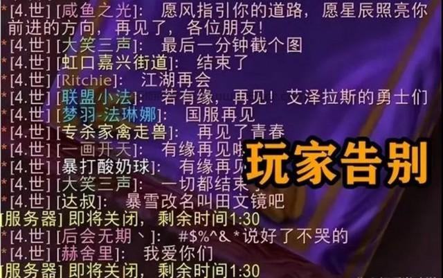 ▲图:魔兽玩家分享自己在游戏停服前通过聊天版的最后告别,感叹自己的青春也随着国服的停运而结束了